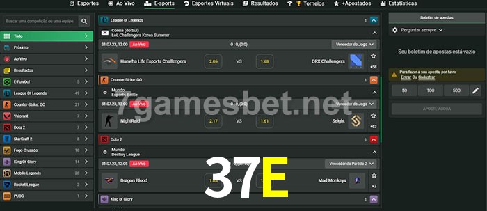 O 37E oferece uma grande seleção de opções de apostas em e-sports com probabilidades competitivas